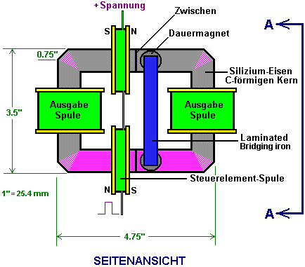 Für es irgendeine Art von Dauerleistung von einem Transformator zu sein, kann der Eingang nicht DC liegen trotz der Tatsache, dass Trockenbatterien verwendet wurden zur Versorgung der Schaltungen (auch wenn die Ausgabe könnte so hoch wie sechs Kilowatt). Coler erklärte, dass seine Forschung zeigt, dass Permanentmagnete tatsächlich bei etwa 180 kHz schwingen. Wenn das richtig ist, dann könnte für die magnetische Induktion in der Schaltung produziert ausmachen. Wenn es das ist nicht das, was sich auf in diesem Kreis verlassen, dann die Batterien angeschlossen und getrennt werden kontinuierlich zu haben, und die Technologie ist zu diesem Zeitpunkt einfach, ist wahrscheinlich, dass ein Relais selbst schwingen worden wäre wie in den frühen verkabelt elektrische Glocken. Während diese Anordnung hätte verwendet werden können, nur um verbinden und trennen Sie die Batterien mit einem Relaiskontakt, wird die Relaisspule Hochspannungs-scharfe Impulse erzeugt haben, erzeugen kurzen magnetischen Pulsen der Art, die einen Zufluss von kaltem Strom verursacht in den Kreislauf von der Umgebungstemperatur ein Hintergrund.