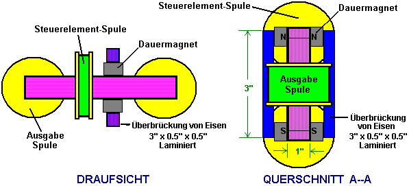 durch den dualen Hufeisenmagneten Spulen (Searle Effect) als Plus-und