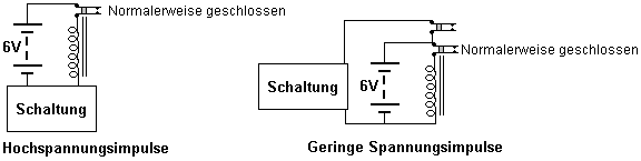 Alternativ kann, obwohl es nicht erwähnt oder vorgeschlagen, könnte die Verbindung hergestellt haben mit einem Relais, welches nur einen Kontakt hatte, in welchem Fall die Gegen-EMK der Relaisspule kann Hochspannungsimpulse zugeführt direkt haben in den Kreislauf. Dies ist natürlich nur schlecht informierte Spekulation. Die Anordnung gewesen sein könnte: