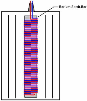 besteht im Wesentlichen aus zwei parallel geschalteten Spulen, die als bi-filar