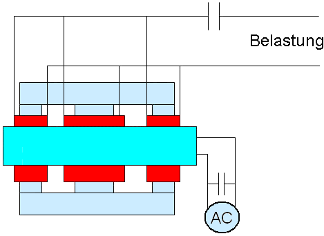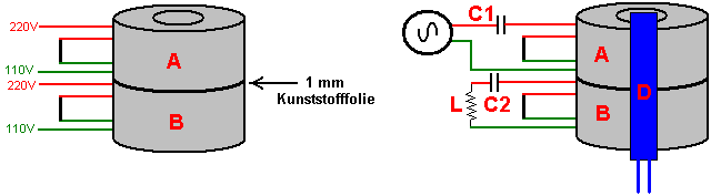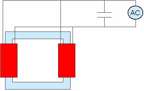 Kondensatoren und zwei Induktions-weniger Spulen mit externe Beschaltung zur