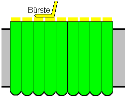 an jedem Ende und es kann zu Spulen in diesen Positionen als Beschleuniger