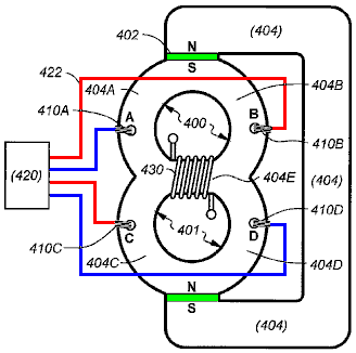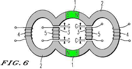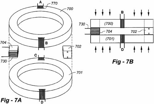 Ein weiteres Gerät dieser Art stammt von Charles Flynn. Die Technik des Aufbringens magnetischen Variationen des magnetischen Flusses, der durch einen Permanentmagneten erzeugt wird detailliert in den Patenten von Charles Flynn, die in der Anlage enthalten sind, bedeckt. In seinem Patent zeigt er Techniken zur Herstellung linearer Bewegung, reziproke Bewegung Kreisbewegung und Kraftübersetzung, und er gibt eine beträchtliche Menge an Beschreibung und Erläuterung auf jeweils seinen Hauptpatent mit hundert Abbildungen. Unter einer Anwendung nach dem Zufallsprinzip: