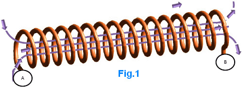 Dies ist gut und gut, aber der Haken ist, dass, wenn der Impuls in Spule 2 beendet ist, erzeugt er auch eine Magnetimpuls, und leider, dass magnetische Impuls läuft in die entgegengesetzte Richtung, entgegen der Betrieb Spule 1 und wodurch es zu haben, steigern sie die Eingangsleistung, um diesen Magnetfluss in die entgegengesetzte Richtung, hier durch die roten Pfeile zu überwinden: