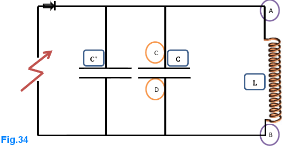 Fig.4 oben ist eine elektrische Darstellung der wichtigsten Kondensator "Kern" und die Spule-Anschlüsse des Stromnetzes E-Stress. Beachten Sie die parallelen Verbindungen der inneren und äußeren Kondensatoren CEI / CDE, die connect an die 90 Volt Gleichstrom-Stromquelle. Beachten Sie auch die parallelen Verbindungen Induktions-weniger Windungen das Herstellen einer Verbindung mit variabler Frequenz-Oszillator-Schaltung. Der Zentrum-Kondensator Cr angezeigt wird verbunden mit der Resonanz macht Spule Lr.