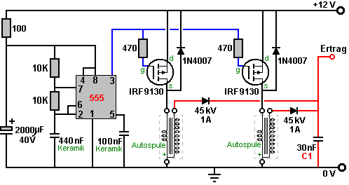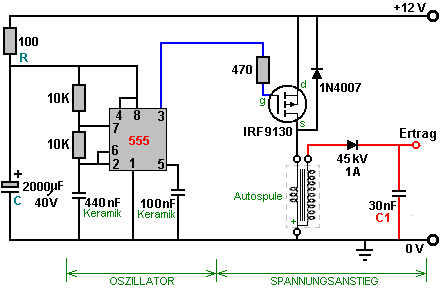 Spannungsquelle Vc im Bereich von 50 bis 90 Volt Gleichstrom. Die Kapazität