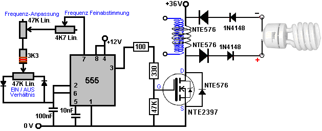 Fig.5 oben, zeigt die zwei verschiedenen Arten von variabler Frequenz-Oszillatoren, die verwendet werden, die Induktion-weniger Windungen zu fahren. Der erste Oszillator angezeigt besteht aus einem LM324 Op-Amp führen zu einer Rückkopplung und damit oszillieren konfiguriert. Der zweite Beispiel-Oszillator besteht aus einen LM555 Timer IC. Entweder Beispiel-Oszillator kann verwendet werden, die Induktion-weniger Windungen zu fahren.