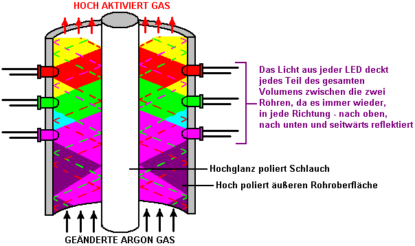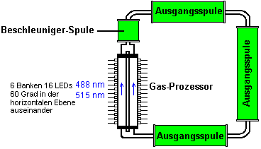 Diese Kraftverstärkung des Gases erfolgt über Stan "Gas-Prozessor" in Kapitel 10 beschrieben. Die Gas-Prozessor Pumpen elektromagnetische Energie in das Gas durch den Einsatz von Banken Leuchtdioden, die Licht der richtigen Wellenlänge, um Energie zu diesem speziellen Gas hinzuzufügen produzieren.