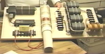 Russ, in seiner Diskussion, weist darauf hin, dass auf den meisten der überlebenden Prototypen Stans, die Spule, die für die Beschleunigung verwendet wird aufgebaut ist mit mehreren scheinbar getrennten Spulen, und er spekuliert, dass jede Spule Abschnitt sequentiell betrieben, was zu einer plätschernden Magnetfeld. Das ist zwar durchaus möglich, ich sehe nicht, dass eine Art von Spule Versorgung würde keinen Vorteil haben, wie dem Einschalten alle Spulen kontinuierlich entgegen. Wenn jedoch sequentiellen Einschalten wird angenommen, dass ein Vorteil sein, dann die "Division-durch-N"-Schaltung von Kapitel 12 kann verwendet werden, um die sequentielle Stromversorgung oder mehr komplexe Sequenz bereitzustellen.
