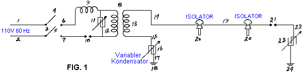 und die Sekundärwicklung des Transformators 8. Die Sekundärwicklung ist mit der Erde durch variable Kondensator