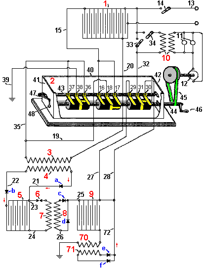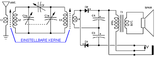 eines Abwärts-Transformator, der Wicklung geht dann zu 31 bis variablen Kondensator 29