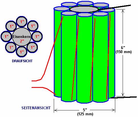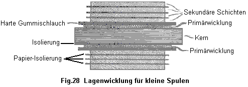 verwendet wurden mit Glasisolierung bedeckt. Sie waren auch die Windungen der