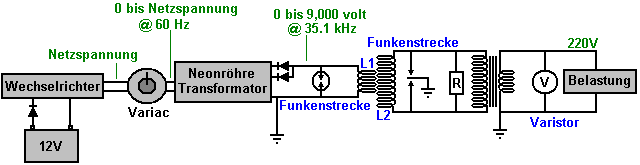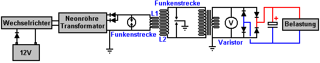 Funkenstrecke ist, ist ein variabler Kondensator 11, 12 ist die Primärwicklung 13