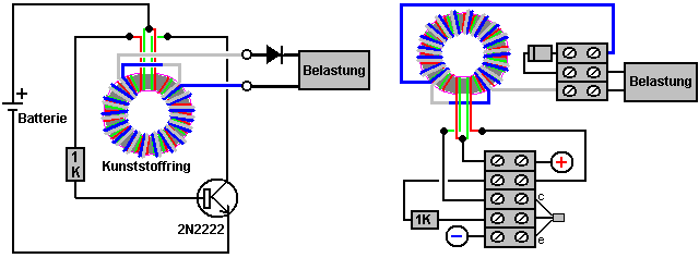 Wasser in einer Richtung innerhalb des Toroids. Eine elektromotorische Kraft