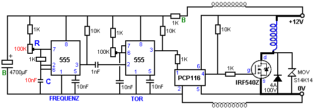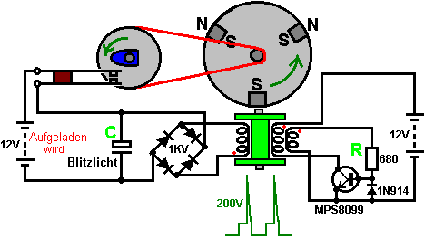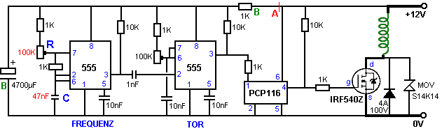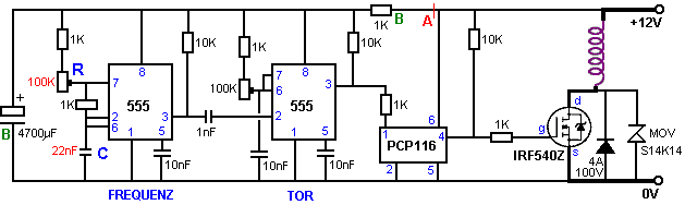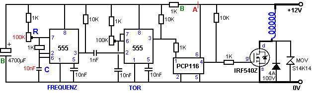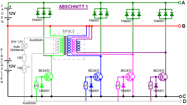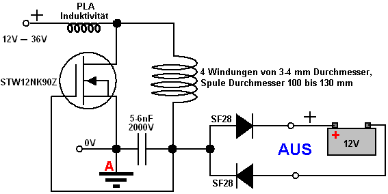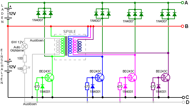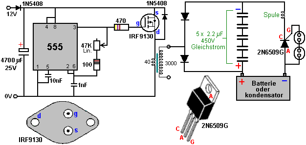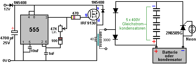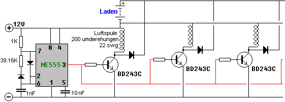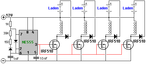 tragen. Dieser schaltet den Transistor hart an, das Fahren eines starken Stromimpuls