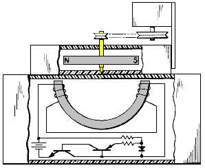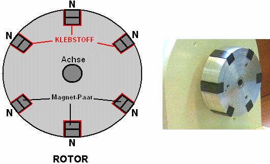 wie der Rotormagnet übergibt den gekrümmten Elektromagneten in der Basis, so