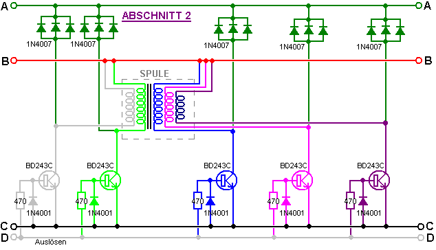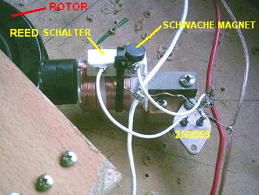 schaltet sie auf den zwei Transistoren, die einen Impuls, der die Rotorspinnen