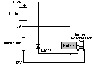 verbindet, die Spannung des Stiftes 2 nach unten und veranlaßt das Relais, den
