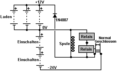sperrt den Schalter in einer Position und später sperrt ein Stromimpuls
