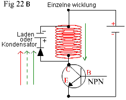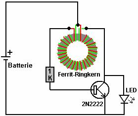 Wicklung speist einen Strom zu der Basis des Transistors über den Widerstand R