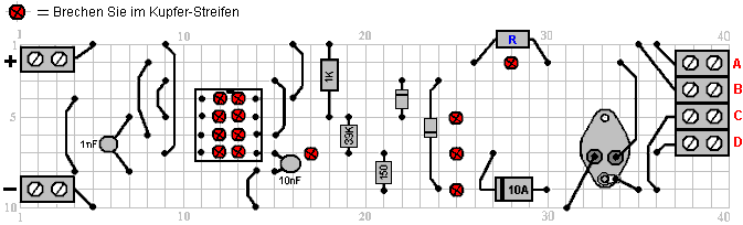 Stellen hin, an denen der Kupferstreifen an der Unterseite der Platine