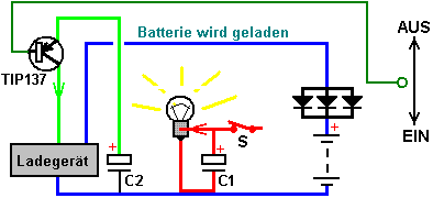 in denen der Stromkreis zum Fortsetzen der Batterieladung verwendet werden