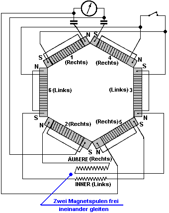 Diese sechs Magnete sind in einem Sechseck angeordnet und verdrahtet, wie hier gezeigt: