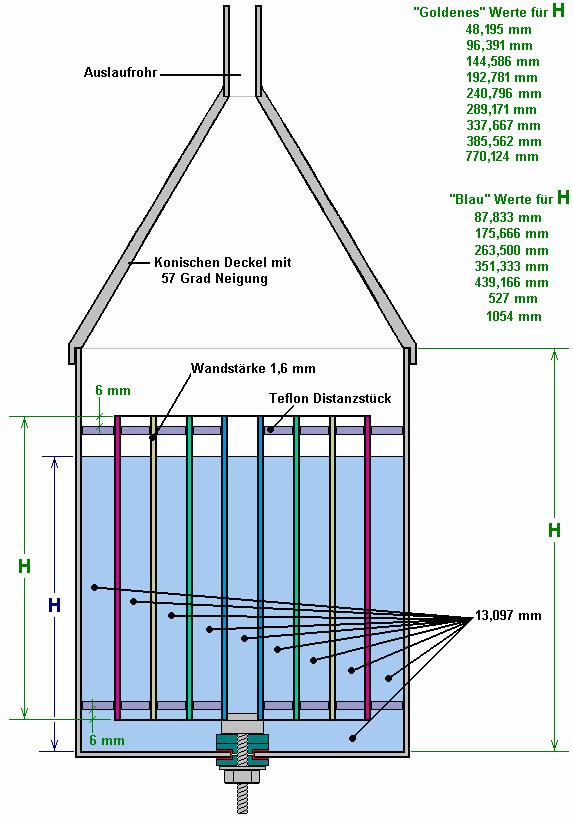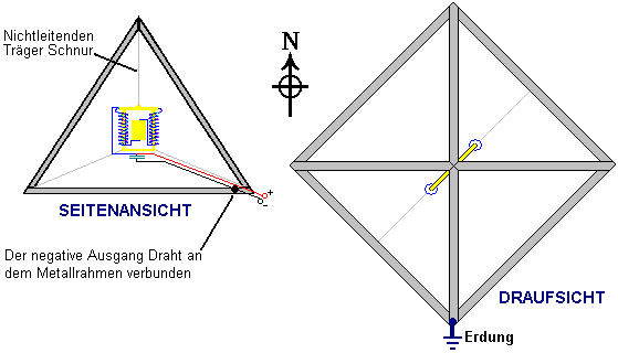 unter einem hohlen Pyramide aus dielektrischem Material, wie Hartpapier, Paraffin