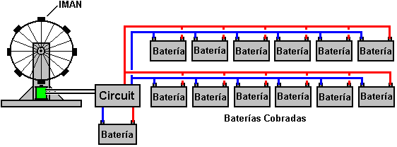 Esto es aún más extraño, teniendo en cuenta que los molinos de viento, las ruedas hidráulicas, los proyectos hidroeléctricos, los paneles solares, los sistemas de energía movidos por olas, los sistemas de energía movidos por mareas y los sistemas de energía geotérmica, son aceptados y considerados perfectamente normales, a pesar del hecho de que todos ellos operan en base a la energía que fluye desde el entorno local. Es difícil no llegar a la conclusión de que los intereses creados están trabajando duro para evitar que la ciencia convencional acepte el hecho de que la energía libre nos rodea y esta disponible para que la usemos. Quizás ellos quieran que sigamos pagando por el combustible que hay que quemar para "fabricar" la energía que alimente nuestros hogares y vehículos. Otro ejemplo del uso de la energía de los imanes en el diseño de un motor potente, proviene de Charles Flynn. Él utiliza un método similar de de discriminación eléctrica para evitar que el arrastre magnético frene la rotación del eje. En lugar de usar electroimanes, Charles utiliza imanes permanentes tanto en el rotor y como en el estator, y una bobina plana de alambre para crear los campos bloqueadores: ![]() Cuando la bobina no tiene corriente que fluya a través de ella, no produce un campo magnético y el polo sur del imán del rotor es atraído con igual fuerza hacia delante y hacia atrás por el polo norte del imán del estator. Si hay dos bobinas, como se muestra a continuación, y se alimenta una y la otra no está accionado, el tirón hacia atrás se cancela y la atracción hacia adelante hace que el rotor se mueva hacia adelante: ![]() La ciencia convencional le echa un rápido vistazo a este esquema y proclama que la eficiencia del motor tiene que ser menor del 100% debido a los grandes pulsos eléctricos necesarios para hacer girar el eje. Esto sólo demuestra una completa falta de comprensión de cómo funciona el motor. No hay un "grandes pulsos eléctricos" porque el motor no está impulsado por impulsos eléctricos, sino por la atracción de muchos pares de imanes, y sólo un pulso eléctrico muy pequeño se aplica para cancelar el arrastre hacia atrás cuando los van pasando. Para poner esto en contexto, el poderoso motor prototipo construido por Charles giraba a 20.000 rpm y la potencia de las bobinas era suministrada por una simple batería seca de 9 voltios, totalmente incapaz de suministrar altas corrientes. El motor se puede hacer más potente fácilmente, usando un estator de imanes a ambos lados del rotor, como se muestra aquí: ![]() No hay límite para la potencia que puede tener este motor pues pueden montarse capa tras capa de imanes sobre un mismo eje, como se muestra en la próxima figura. Los impulsos eléctricos de las bobinas de detección, pueden sincronizarse con la luz unos Diodos Emisores de Luz (LEDs) montados en la Sección de Temporización. Dicha luz, pasaría en el momento adecuado a través de los agujeros de un disco de temporización, conectado al eje del motor, y llegaría a unas foto-celdas (resistencias que varían con la luz) las cuales se usarían para generar oportunamente los pulsos eléctricos para activar las bobinas. Un método alternativo es para omitir la sección de temporización en conjunto y proporcionar los pulsos de sincronización de una ajustable de frecuencia de circuito electrónico pulsante. Para arrancar el motor, pulsos muy lentas se generan para conseguir la unidad eje en movimiento, y entonces la frecuencia del pulso se aumenta a la velocidad del motor hacia arriba. Esto tiene la ventaja de proporcionar control de velocidad que puede ser útil para algunas aplicaciones: ![]() Sistemas basados en Antenas. Estamos rodeados de tanta energía que una simple conexión antena aérea con un extremo conectado a tierra, puede extraer enormes cantidades de energía eléctrica del medio ambiente local. ![]() Thomas Henry Moray hizo frecuentes demostraciones públicas en las cuales encendía bancos de bombillas para demostrar se podían extraer cantidades útiles de energía del medio ambiente. El dispositivo de Moray podría producir una potencia de salida de hasta 50 kilovatios y no tenía partes móviles, sólo una antena sencilla y una tierra. A pesar de las frecuentes demostraciones, algunas personas creían que esto era un engaño, por lo que Moray les invitó a que eligiesen un lugar, para que el pudiese demostrarles la energía que había disponible en cualquier sitio: ![]() La gente escogió un campo en un lugar muy aislado, lejos de todas las líneas eléctricas y las pocas estaciones de radio comerciales que había en la zona. Montaron Moray montó una antena muy simple, que según un observador, medía 57 pies (unos 17 metros) de largo, y estaba a una altura de 7 pies (unos 2,5 metros) sobre el suelo en su punto mas bajo: ![]() La conexión a tierra era un trozo de tubería de gas de ocho pies de largo, clavada en el suelo. El banco de luces que se energizaba con el dispositivo de Moray, aumentaba su luminosidad a medida que la tubería de gas se enterraba mas profundamente en el suelo, proporcionando así una mejor conexión a tierra. Moray demostró entonces que cuando la antena se desconectaba, las luces se apagaban. Cuando la antena se conectó de nuevo, las luces se encendieron de nuevo. A continuación desconectaron el cable de tierra y las luces se apagaron y permaneció así hasta que el cable de tierra se conectó de nuevo. Los escépticos quedaron totalmente convencidos por la demostración. El dispositivo de Moray es uno de los varios excelentes y exitoso dispositivos que no puedo decirle exactamente cómo replicar, pero el punto importante aquí, es que una antena de 17 metros, elevada 2,5 metros por encima del suelo, puede proporcionar kilovatios de potencia eléctrica en cualquier lugar, si usted sabe cómo hacerlo. Las demostraciones de Moray fueron muy impopulares para cierta gente, y de hecho, le dispara