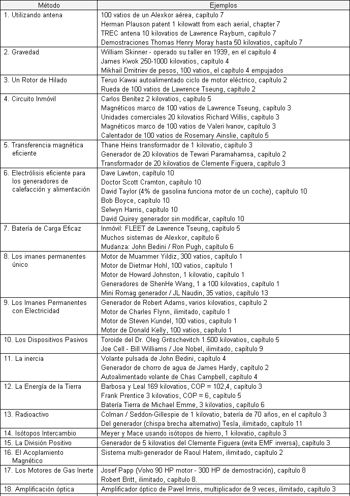 Información general Traducido por Javier Espinosa Este documento contiene la mayor parte de lo que he aprendido acerca de este tema después de investigar por un buen número de años. No estoy tratando de vender nada, ni estoy tratando de convencerte de nada. Cuando empecé a indagar sobre este tema, había muy poca información útil y la que se encontraba, estaba enterrada profundamente en patentes y documentos incomprensibles. Mi propósito aquí es hacer que sea más fácil para usted localizar y comprender algo del material relevante disponible. Lo que usted crea depende de usted y no es asunto mío. Permítame subrayar que casi todos los dispositivos analizados en las páginas siguientes, son dispositivos que personalmente no he construido y probado. Se necesitarían varias vidas para hacer eso y no sería de ninguna manera una opción práctica. En consecuencia, aunque creo que todo lo dicho es totalmente exacto y correcto, usted debe tratar todo, como "rumores" u opiniones. Hace algún tiempo, se creía que el mundo era plano y descansaba sobre las espaldas de cuatro elefantes y que cuando los terremotos sacudían la tierra, era porque los elefantes estaban inquietos. Si usted quiere creer eso, está en plena libertad de hacerlo, sin embargo, sáqueme de su lista, porque yo no lo creo. A los hermanos Wright les dijeron que era imposible que los aviones volasen, pues eran más pesados que el aire. Ese era el punto de vista comúnmente aceptado. Pero los hermanos Wright vieron volar a los pájaros que, sin lugar a dudas, eran mucho más pesadas que el aire, así que estaba claro que la opinión generalizada era simplemente errónea. Trabajando respecto a esa nueva idea, desarrollaron aviones que volaban muy bien. Los años pasaron, y la tecnología iniciada por los hermanos Wright con sus cuidadosas mediciones científicas y su bien razonada teoría, avanzó para convertirse en la "ciencia" de la aeronáutica. Esta ciencia se ha utilizado extensamente para diseñar y construir aeronaves muy exitosas y "la aeronáutica" se ganó el aura de ser una "ley". Por desgracia, alguien aplicó los cálculos aeronáuticos al vuelo de los abejorros y descubrió que de acuerdo a la aeronáutica, los abejorros no podrían volar, ya que sus alas no podían generar suficiente sustentación para que pudiesen despegarse del suelo. Esto fue un problema, ya que era perfectamente posible ver las abejas y abejorros volando en forma muy competente. Por lo tanto, las “leyes” de la aeronáutica dicen que las abejas no pueden volar, pero las abejas SI vuelan en realidad. ¿Eso quiere decir que las leyes de la aeronáutica no sirven para nada? Por supuesto que no - las “leyes” se ha utilizado durante años y ha demostrado su valor mediante la producción de aviones excelentes. Lo que hizo fue mostrar que las “leyes” de la aeronáutica aún no cubren todos los casos y que deben ser ampliadas para explicar la forma en que vuelan las abejas, que es a través de la sustentación generada por una turbulencia flujo de aire. Es muy importante darse cuenta de que lo que definimos como "leyes", son sólo las mejores teorías de trabajo en la actualidad y es prácticamente seguro que las "leyes" tendrán que ser mejoradas y ampliadas, a medida que se hagan mas descubrimientos y observaciones científicas. Esperemos que esos cuatro elefantes no se pongan inquietos antes de que tengamos la oportunidad de aprender un poco más! Cabe destacar, que este material sólo tiene la intención de ofrecerle información y nada más. Si debe decidir, sobre la base de lo que lee aquí, sobre construir un dispositivo u otro, lo hace única y exclusivamente a su propio riesgo y bajo su propia responsabilidad. Por ejemplo, si se construye algo en una caja pesada y luego la deja caer sobre el dedo gordo de su pie, eso es solo y exclusivamente su responsabilidad (debe aprender a tener más cuidado) y nadie más que a usted mismo es en modo alguno responsable de su lesión, o cualquier pérdida de ingresos que pueda tener mientras que su dedo gordo del pie esté en recuperación. Permítanme ampliar que al afirmar eso, no garantizo que cualquier dispositivo o sistema que descrito en este el documento funcione como se describe, o de cualquier otra manera, ni tampoco afirmo que alguna parte de la siguiente información sea útil en alguna manera o que cualquier dispositivo descrito sea útil en cualquier forma o por cualquier motivo. Además, permítanme subrayar que yo no te estoy animando a construir realmente ningún dispositivo descrito aquí, y el hecho de que se proporcione una descripción muy detallada de la construcción, no debe interpretarse como que le esté animando a usted a construir físicamente cualquier dispositivo descrito en este documento. Le invitamos a considerar todo esto como una obra de ficción, si usted así elige hacerlo. Pido disculpas si esta presentación parece muy elemental, pero la intención es hacer cada descripción de forma tan simple como sea posible para que todo el mundo pueda entenderla, incluyendo a las personas cuya lengua materna no es el Inglés. Si usted no está familiarizado con los principios básicos de la electrónica, por favor lea el sencillo tutorial de electrónica que aparece en el Capítulo 12, cuyo objetivo es ayudar a los principiantes en el tema. Hoy en día - los primeros años del siglo XXI - hemos llegado al punto en que tenemos que darnos cuenta de que algunas de las “leyes” de la ciencia no cubren todos los casos, y que si bien han sido muy útiles en el pasado, es necesario que se extienda a algunos casos que han quedado fuera hasta ahora. ![]() Por ejemplo, supongamos que un ladrón de entró en un banco y para robarse todo el dinero que había. ¿Cuánto podría llevarse? Respuesta: "cada moneda y cada billete". El límite es la suma total de todo el efectivo en el edificio. Esto es de lo que la "Ley" de la conservación de la energía se trata. Lo que 
