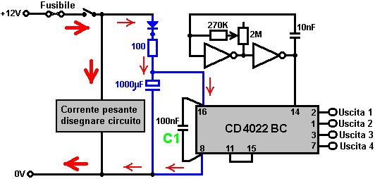 fili del circuito, in realtà alimentare il circuito per una frazione di secondo