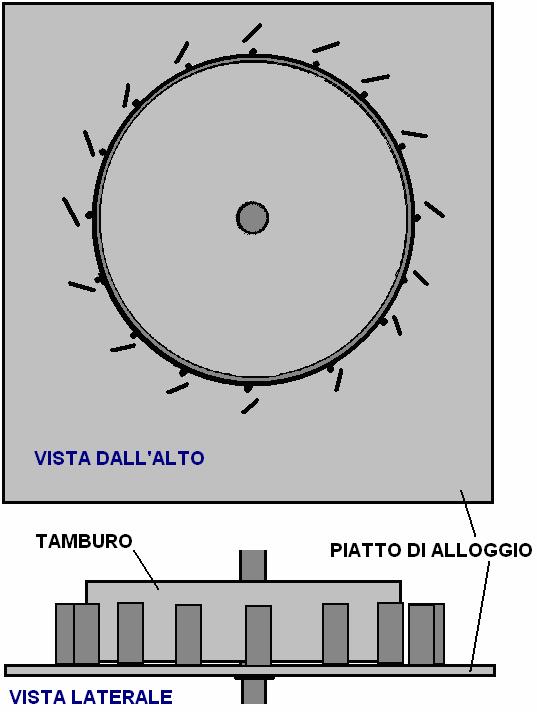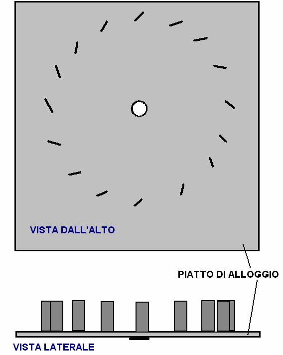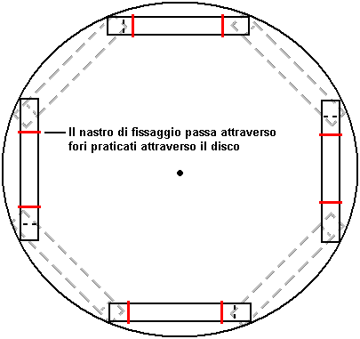 otto tubi sul disco, quattro per lato e un lato sfalsati di 45 gradi in