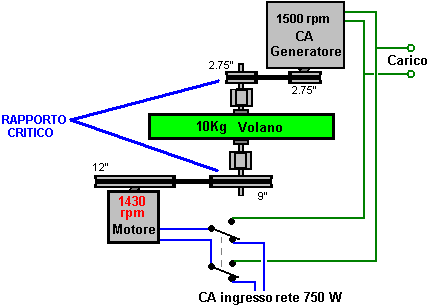 accelera progressivamente, il generatore inizia a produrre il potere che è