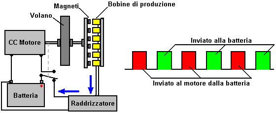 rotazione, quindi preparando l'alternatore che gira molto più veloce rispetto