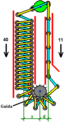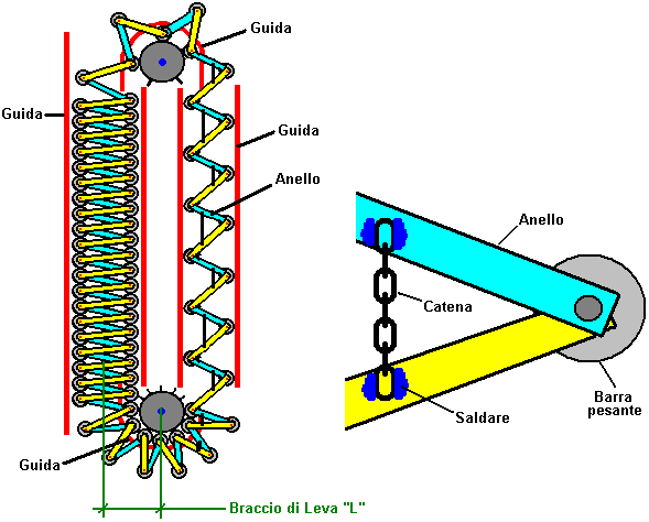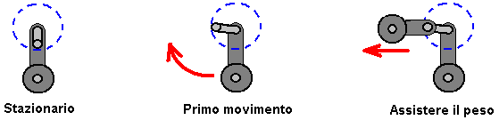 immediatamente la parte superiore dell'asse viene ruotata e W il peso inizia a