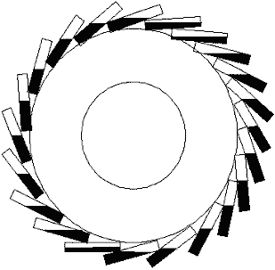 più in senso orario, piuttosto che esattamente come mostrato