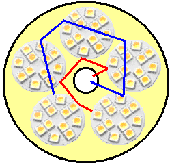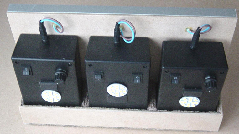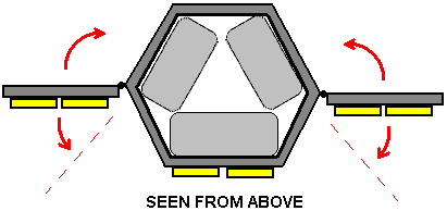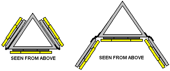 ![]() The triangular shape makes for easy construction and is very robust from an engineering point of view. It also cuts down the number of faces needed for 360-degree lighting to just three. The versatility is increased greatly if two faces are hinged: ![]() This arrangement allows two faces to be aligned with the fixed front face, giving all horizontal lighting in one direction which is a very, very bright arrangement. The two faces can be moved further around to give the wanted narrow forward beam for walking outdoors. If desired, the lighting level can be controlled by making the On/Off switch a three-pole four-way rotary switch: ![]() This arrangement gives Off, One panel, Two panels and Three panels of illumination, but it could also be that instead of switching off an entire panel that the switching illuminates one LED array per panel, two LED arrays per panel and three LED arrays per panel. If ordinary 10-battery holders are used, then the lamp housing can be made more compact as the corners of the triangle are not needed. The battery packs fit in like this: ![]() Giving a compact hexagonal shape which is strong and has the same lighting capability. The sides extend above the top and below the base so that the unit can stand on a flat surface either way up. The hinges need to be stiff so that they hold their position when set to the desired angle. ![]() The addition of a simple hinged flap to the base allows a tilted option which imitates the downward lighting style of a desk lamp: ![]() This unit is recharged by plugging it in to a small solar panel as before. This unit was never manufactured as the person who asked me to design it for him decided that it was too expensive as it would cost him £25 to make one. Patrick Kelly http://www.free-energy-info.tuks.nl http://www.free-energy-info.com http://www.free-energy-info.co.uk http://www.free-energy-devices.com |