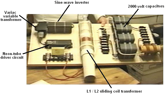 There is nothing magic about free-energy and by “free-energy” I mean something which produces output energy without the need for using a fuel which you have to buy. ![]() Donald Lee Smith died a few years ago. He is famous for his high-power self-powered free energy designs. There are several videos on the web, showing some of his lectures. He produced one pdf document which is shown at the end of this chapter, and in May 2004 he was granted one patent. Don stated clearly in one of his lectures, that he never did disclose the full details of his designs. However, Don says that he discloses enough for somebody who is experienced in radio-frequency electronics to be able to deduce the things which he does not disclose and so build a device for his own use. If that is the case, then anybody who has succeeded in doing so has kept very quiet about it afterwards (which would be understandable). Don produced at least forty eight different devices which draw energy from what Don prefers to call "the ambient background". His devices are capable of supplying kilowatts of excess energy and in most cases they do not require any input energy to be supplied by the user. Don’s work is subtle and not easy to replicate. It is based on the principle that the power output of a circuit increases with the square of the frequency and the square of the voltage. So, if you double the frequency and double the voltage, then the output power goes up and becomes sixteen times greater. As a result of this, Don’s best known design uses a Neon Sign Transformer circuit which raises the frequency to around 35,000 cycles per second and raises the voltage to anything from 2,000 volts to 12,000 volts, giving a power output is physically quite small and yet it has an output of 160 kilowatts (8000 volts at 20 amps) from an input of 12 volts 1 amp. That is, the output power is more than thirteen thousand times greater than the input power. Consequently, his designs are dangerous and can kill you instantly. In other words, his designs are for experienced developers only. Please bear in mind that the voltages here and their associated power levels are literally lethal and perfectly capable of killing anyone who handles the device carelessly when it is powered up. When a replication of this device is ready for routine use, it must be encased so that none of the high-voltage connections can be touched by anyone. This is not a suggestion, but it is a mandatory requirement, despite the fact that the components shown in the photographs are laid out in what would be a most dangerous fashion were the circuit to be powered up as it stands. Under no circumstances, construct and test this circuit unless you are already experienced in the use of high-voltage circuits or can be supervised by somebody who is experienced in this field. This is a "one hand in the pocket at all times" type of circuit and it needs to be treated with great care and respect at all times, so be sensible. Don Smith considered himself to be self taught. Don says that his understanding comes from the work of Nikola Tesla as recorded in Thomas C. Martin's book "The Inventions, Researches, and Writings of Nikola Tesla" ISBN 0-7873-0582-0. This book can be downloaded from www.free-energy-info.com as a pdf file. Don states that he repeated each of the experiments found in the book and that gave him his understanding of what he prefers to describe as the 'ambient background energy' which is also called the 'zero-point energy field'. Don remarks that he advanced further than Tesla in this field, partly because of the devices now available to him and which were not available when Tesla was alive. Don stresses two key points. Firstly, a dipole can cause a disturbance in the magnetic component of the 'ambient background' and that imbalance allows you to collect large amounts of electrical power, using capacitors and inductors (coils). Secondly, you can pick up as many powerful electrical outputs as you want from that one magnetic disturbance, without depleting the magnetic disturbance in any way. This allows massively more power output than the small power needed to create the magnetic disturbance in the first place. This is what produces a “Coefficient Of Performance”>1 device and Don has created nearly fifty different devices based on that understanding. Although they get removed quite frequently, there is one video which is definitely worth watching if it is still there. It is located at www.metacafe.com and was recorded in 2006. It covers a good deal of what Don has done. In the video, reference is made to Don's website but you will find that it has been taken over by Big Oil who have filled it with innocuous similar-sounding things of no consequence, apparently intended to confuse newcomers searching for information on Don’s designs. The present situation in 2019 is that few people understand Don’s designs fully (and I myself, fall into that category), the high-voltage components are expensive and hard to find, and the high voltages are dangerous. However, we will look at three of his many designs and try to understand them as best we can. We will start with his patented design: TRANSFORMER GENERATOR MAGNETIC RESONANCE INTO ELECTRIC ENERGY ABSTRACT The present invention refers to an Electromagnetic Dipole Device and Method, where wasted radiated energy is transformed into useful energy. A Dipole as seen in Antenna Systems is adapted for use with capacitor plates in such a way that the Heaviside Current Component becomes a useful source of electrical energy. DESCRIPTION Technical Field: This invention relates to loaded Dipole Antenna Systems and their Electromagnetic radiation. When used as a transformer with an appropriate energy collector system, it becomes a transformer/generator. The invention collects and converts energy which is radiated and wasted by conventional devices. Background Art: A search of the International Patent Database for closely rela