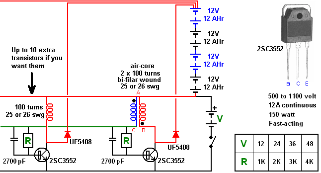There is nothing magic about free-energy and by “free-energy” I mean something which produces output energy without the need for using a fuel which you have to buy. This is information for people who are not fully familiar with the subject of free energy. What I mean by free-energy is energy to run the devices which you use – TV, computer, air conditioning, cooker, washing machine, fan, etc. – without having to pay for a fuel to generate that power. That sounds mad to people who do not realise that we live in an energy field so powerful that running every powered device on Earth for a thousand years would never even be noticed by that energy field. Yet, that is exactly the way that things are. There are air-conditioning systems which can easily be bought and which can either heat or cool the air passing through them. These are heat pump systems which draw energy from the local environment as well as from the electrical supply to which they are connected. Their efficiencies range from 250% to around 500% efficient. That is, the heating of the air is two to five times more efficient than using a fan heater or other electrical heater. One of them looks like this: ![]() And the technical information includes the fact that the output from this unit is more than four times the input power (called the “Coefficient Of Performance” or “COP”): ![]() Split air conditioning units which have an outdoor section as well as an indoor section, are more efficient again, some having a Coefficient Of Performance greater than five, that is, the output power is more than five times greater than the input power which you have to supply to make it work. That is a fine performance, but it will only work if you can provide the electricity which the air conditioner needs. Thanks to a lightning strike and the loss of two power stations, a few days ago, more than a million people in the UK did not have a working electricity supply. It would be nice to have your own electricity supply. Free-energy can provide that. There are two main groups of people who want free enerrgy. The first group are the people who just don’t want to pay for electricity. The second group are the people who want to stop the pollution that the present oil-based system is causing. I’m sorry to tell you, but while the incoming energy which ends up as being your electrical supply is indeed free, obtaining a device to make the wanted conversion of the energy is, itself, by no means free. You can convert a gallon of petrol into a powered trip of many miles, but to do that you would probably want a car, and cars are by no means free. So, even if you have to pay for it, how do you get your own supply of electricity? You can definitely do it and it can be done in several different ways, some of which are well beyond the abilities of the average person to arrange. The most simple is using a battery with an ordinary DC-to-AC converter called an “inverter” to generate the same voltage and frequency as your local electricity supply. This battery and inverter system is a well-known method which has been used for many years and very often, the battery is recharged using solar panels mounted on a roof. This method has problems quite apart from the cost of buying and installing the solar panels. At the present time (August 2019) the most obvious choice for a battery is a “deep cycle” lead-acid battery which is roughly the same as that used in cars. However, most people are not aware of the practical difficulties with using a lead-acid battery: 1. The first problem is that a lead-acid battery loses half of the charging current which you feed into it. That means that for every watt of power which you draw from the battery, you have to feed back two watts of recharging power. 2. The next problem is that a battery of that type has a limited operational life, typically, the battery can be charged and discharged 400 to 1000 times at the “C20” rate of current draw and if that rate of current draw is exceeded, then the lifetime of the battery is reduced. The “C20” rate of discharge is one twentieth of the Amp-Hour rating of the battery. So, for a 100 Amp-Hour battery, the battery life will be shortened if more than 5 amps is drawn from it. 3. The third problem is that batteries do not recharge nearly as well if they are also supplying current. That is, a disconnected battery recharges very much better than one which is supplying a load with current. 4. The fourth problem is that most people do not understand how little power can be drawn from a battery compared to the amount of electricity which they actually use from day to day. Take a 100 Amp-Hour battery (costing £60), it’s life will be shortened if more than 5 amps is drawn from it and 5 amps at twelve volts is just 60 watts. That is, if properly treated, the 100 Amp-Hour battery cannot power a 100 watt light bulb. 5. The fifth problem is the current draw from a 12-volt battery, needed to produce 220-volt AC mains output. Is substantial, needing thick wires between the battery and the inverter. For a 1 kilowatt mains supply from a 12-volt battery at 100% inverter efficiency, would require a substantial continuous current. One amp gives 12 watts, so 1000 watts will require 1000 / 12 = 83.33 amps. At 95% inverter efficiency, that is about 88 amps. And that needs an exceptionally thick wire to carry it. Many people want a good deal more than one kilowatt of electrical power. At the C20 rate of battery discharge, you are talking about eighteen 100-Amp-hour batteries. To reduce the current draw from each battery, it is normal to connect four batteries in series to give 48 volts and use a 48-volt inverter. That cuts the individual battery current to 22 amps for each row of four batteries, and so for a C20 current draw, five rows of four batteries in each row would be needed, costing a total of £1200. This looks like a serious list of problems, and yet solar panel battery charging