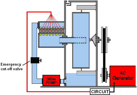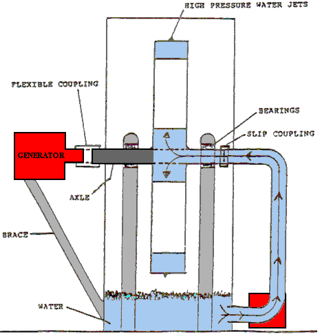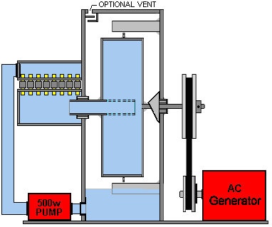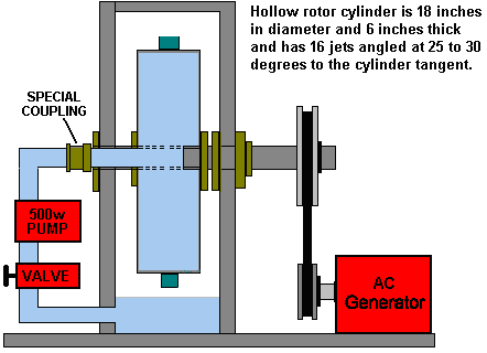 There is nothing magic about free-energy and by “free-energy” I mean something which produces output energy without the need for using a fuel which you have to buy. Free energy devices have been around for a very long time now. I have stood beside a water mill and it’s power is scary as it could crush you in moments and never even notice. That mill is on a quietly flowing small river and it can operate at any time day or night without having to pay anything for the power which it uses. It will have cost quite a bit to build the mill in the first place, but after that, it produces major power year after year. Most free-energy devices are just like that as it costs to build them in the first place, but after that they run for free. This presentation is mainly for people who have never come across free-energy and know nothing about it. So, each chapter deals with just one device and tries to explain it clearly. Donnie Watts has designed a simple generator which is capable of providing enough electrical power to meet the needs of a typical household. The design is based on well known principles and this engine runs cold and is simple enough for many people to be able to build one. With a rotating cylinder of just 250 mm (10-inch) diameter, a self-powered output of ten horsepower can be achieved and ten horsepower is 7.5 kilowatts, so driving a generator with it would power a household. The output power increases with rotor diameter and with rate of spin and so in order to stop the device accelerating until it destroys itself, an inflow valve to limit the water entering the rotating cylinder is an important control requirement. What needs to be understood very clearly is that this is an exponential power engine. The output power is proportional to the square of the rotation speed, so double the revolution speed and you quadruple the output power. Also, the output power is proportional to the square of the rotor diameter, so double the diameter and that quadruples the output power. So, if you double the rotor cylinder diameter and you double the rotation speed, the output power goes up by a factor of sixteen. The basic Coefficient Of Performance for the design is four. That means that the output power is always at least four times greater than the input power. Initially, it is necessary to start the device with a 500-watt water pump, but when the rotation reaches 60 rpm the device no longer needs the water pump although it can be left running if desired. At 60 rpm, the pressure inside the rotor drum reaches the point where the suction caused by the water passing through the rotor jets creates sufficient suction to maintain the operation. But, remember that this is a positive feedback system, with an increase in speed causing an increase in power, an increase in water flow, an increase in speed of rotation, ….. and consequently, the engine will runaway self-powered and if you are not ready for that with a throttle on the rate of water flow into the cylinder, then the engine is perfectly liable to accelerate to the point where internal pressure destroys the engine. In broad outline, the design is like this: ![]() Most generators require to be spun at 3000 rpm or slightly faster. That speed can be achieved by the belt gearing between the output shaft and the generator’s input shaft. A generator of that general type could look like this 5 kilowatt alternator costing £325 in 2018: ![]() However, the output power of this design can be further increased by the inclusion of stainless steel thrust baffles on the inside of the housing. The idea is to have the jets of water strike a fixed surface at right angles to the jet and as close to the jet nozzle as possible: ![]() The curved plate version is theoretically more efficient but the difference is so slight that flat plates are generally used. Let me stress that this device is effectively a fuel-less engine with a substantial output and it can power moving vehicles or run an electrical generator. It can be built in various different configurations. ![]() The 25th September 1989 patent application by Donnie C. Watts describes the operation of the device: CENTRIFUGAL ENERGY AMPLIFICATION AND CONVERSION UNIT Description of Unit The unit consists of two circular steel plates one eighth of an inch thick and four feet or larger in diameter, forming the exterior of a wheel. These plates are placed six inches apart on a hollow axle three inches in diameter. Between these two plates are four V-shaped pieces of sheet metal spaced precisely to form six-inch spokes which will direct water from holes in the central axle to the outer rim, while the inside of the V will form air pockets between the spokes. The ends of the V must not be closer than two inches to the outer rim of the wheel. All four V-shaped units must be precisely placed in balance with each other and securely welded to keep the air pockets and the water pockets separated. The outer rim of the wheel is made of a piece of one eighth inch thick sheet metal six inches wide, formed in a perfect circle and welded securely to the edge of the circular plates so that the area inside is completely enclosed. On this outer rim, directly in the centre, are placed between four and fifty water jets about the size of a football needle, slanted sharply to one side to give the wheel a turning motion. (The optimum number of water jets on the outer rim depends on the application, but the volume of water being expelled through the jets must not exceed sixty-six percent of the volume of water which can pass through the openings at the centre axle. The reasons for this are: 1. The water going out of the jets would be going out faster than the water entering the wheel which would result in no pressure near the outer rim, pressure which is essential for the running of the motor. 2. The water entering the wheel must go immediately into a puddle of water. The longer it remains a stream of water instead of a puddle o