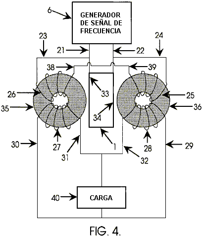 llena 39 rectifica el voltaje a través de bobina secundario 38, y este voltaje
