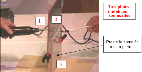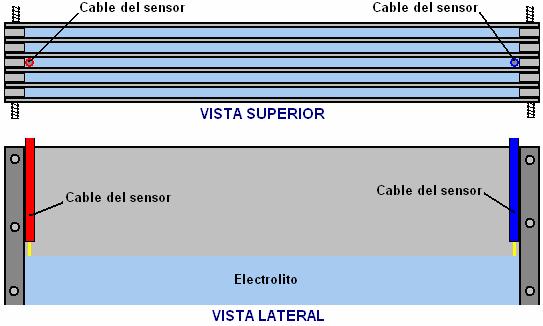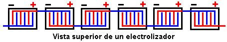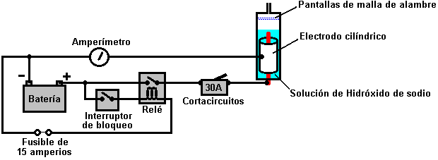 realizada en un tanque electrolítico 15, activada con la corriente eléctrica
