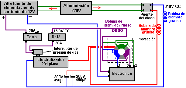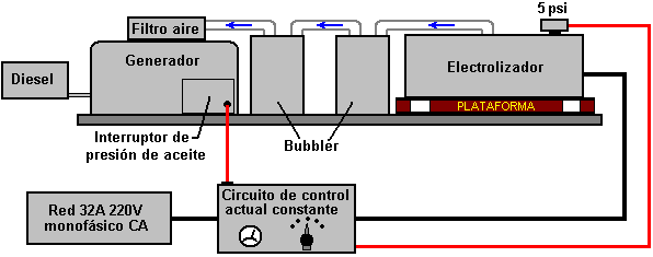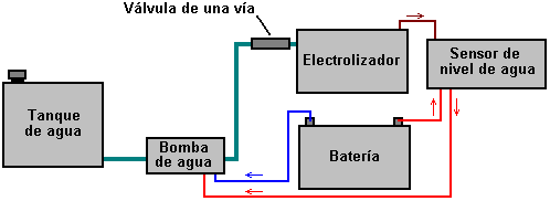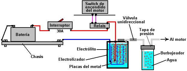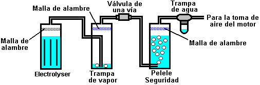 bordo y es inyectado entonces en las cámaras de combustión. La electrólisis es