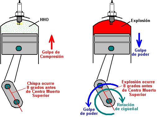 combustible un motor de combustión interno con hidrógeno, y obtención del